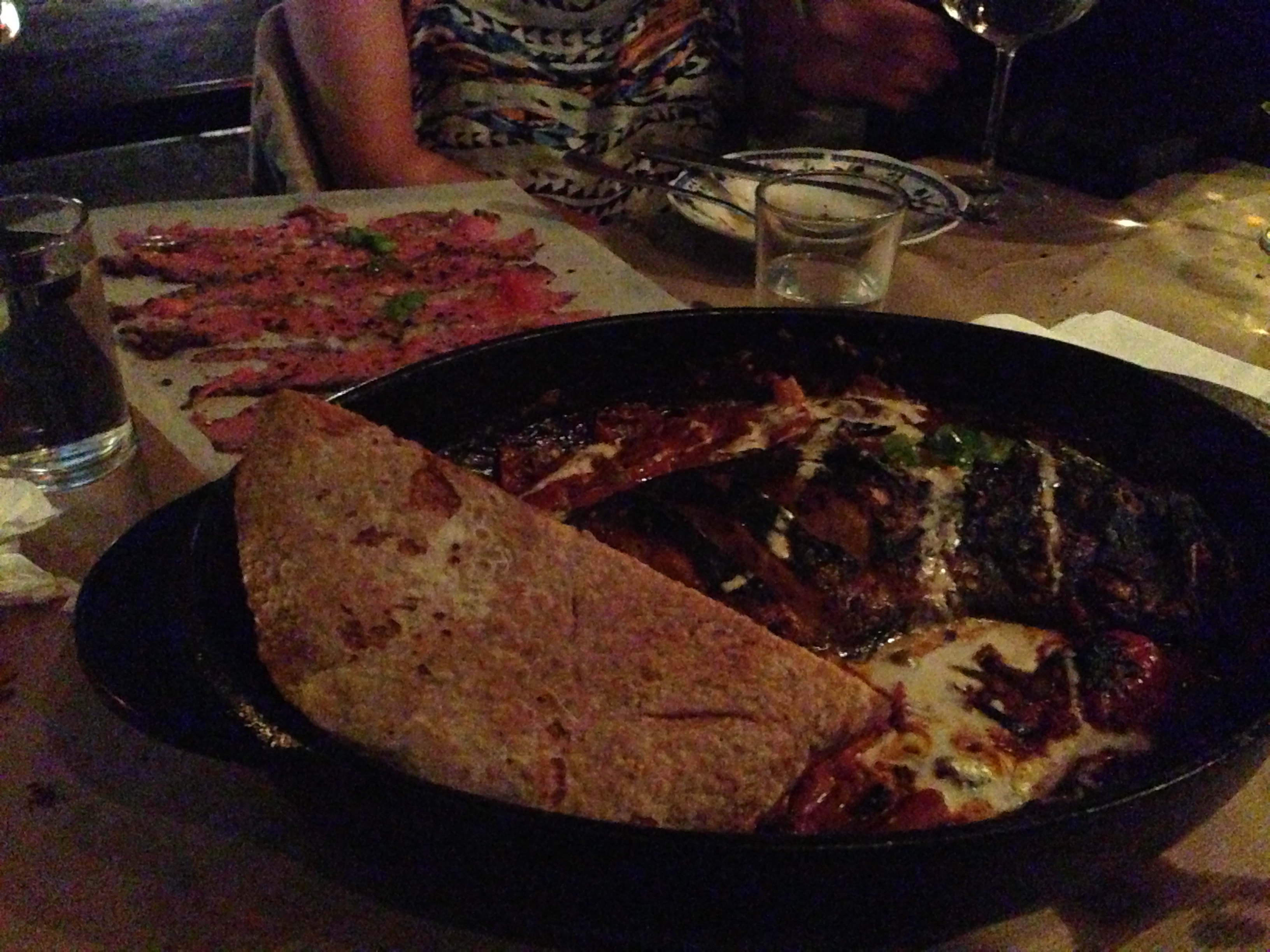The zucchini pizza had a strong oily aftertaste, but that aside, the food was incredible. The cauliflower was tender but not mushy and the tomato and tahini sauce very moreish.