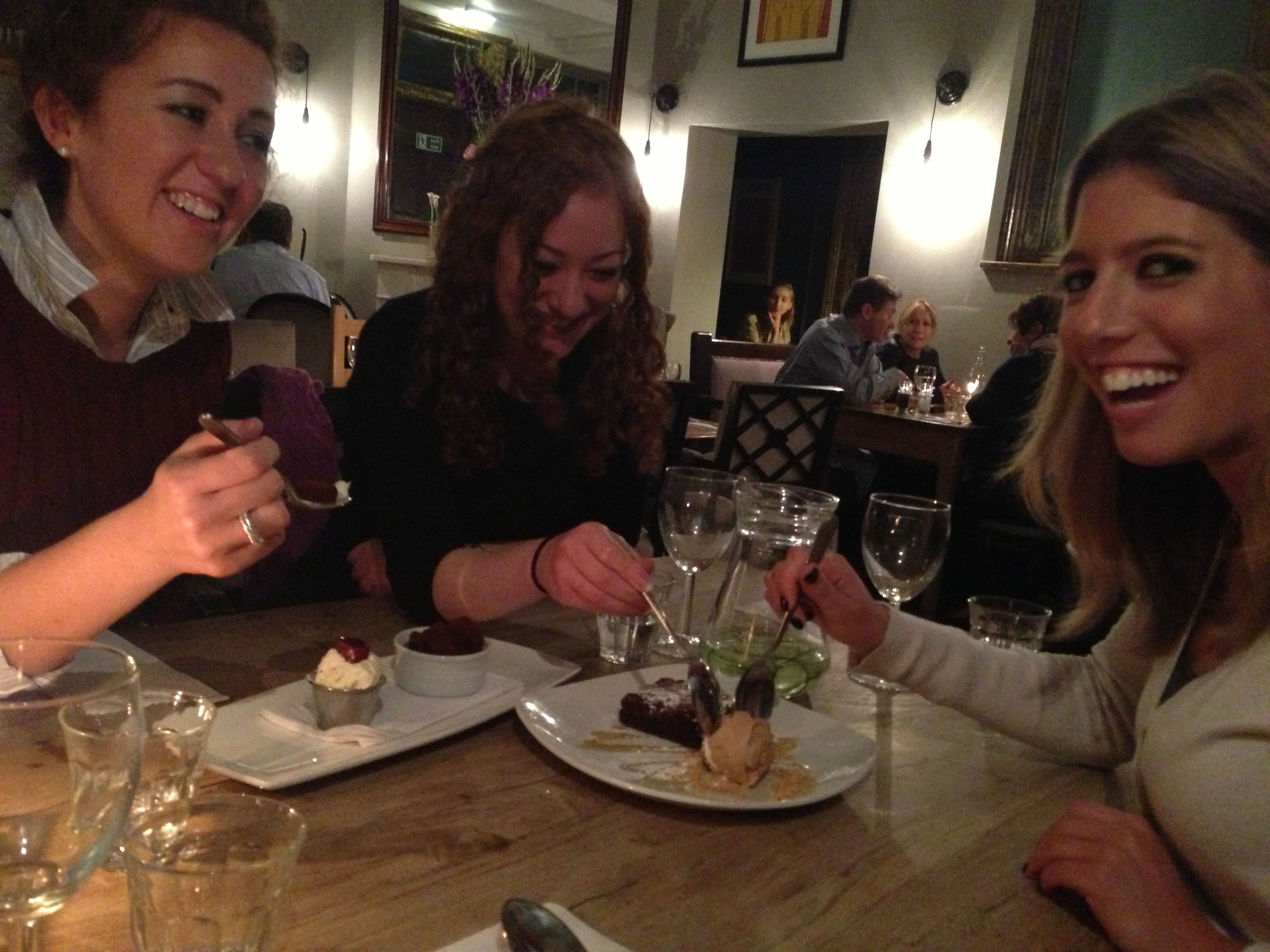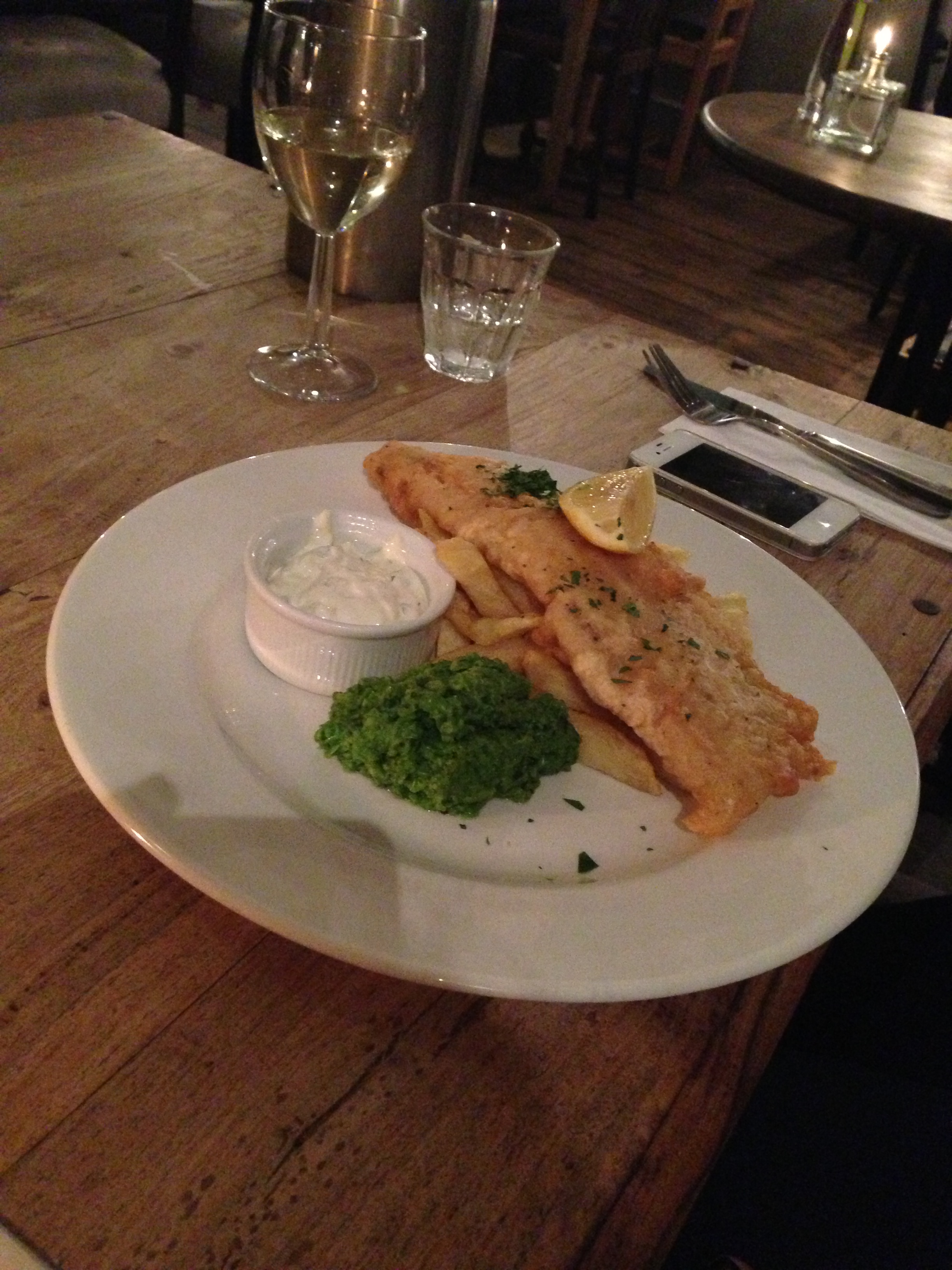 Last week as a main I ordered the lamp rump with cous cous; I really enjoyed this dish. The cous cous was big cous cous (not the small stuff that I often find a little irritating) and the lamb was succulent. One of my friends that I went with this evening liked the texture of the cous cous; when asked why, she said “it complemented the moist lamb.” I have to agree with her. Jealous of the strozzapreti with peas and beans last week, I ordered it tonight. It was extremely flavoursome. My other friends ate fish and chips (one thought the chips were soggy, the other very confidently defended the chips’ reputation) and tuna steak. The fish and mushy peas were complemented whilst the tuna was described as “slightly tasteless and rubbery”, but I was assured that the accompaniment made up for it.