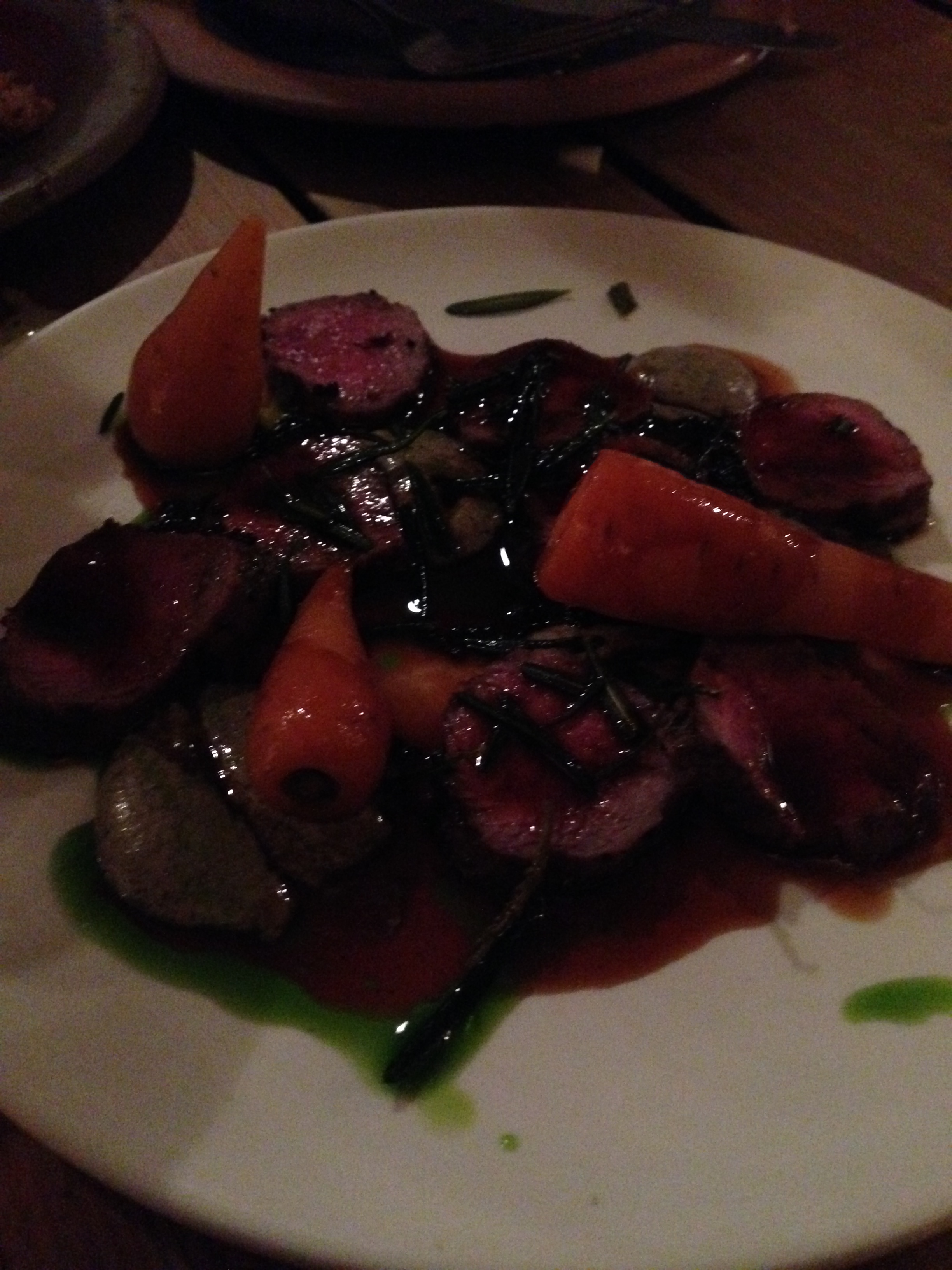 Next we had veal patties, barbecue quail and asparagus with broad beans. The veal was ‘veally good’ (I can’t take credit for that one unfortunately), I loved the little barbecue quails and the asparagus was dressed in a great pesto.