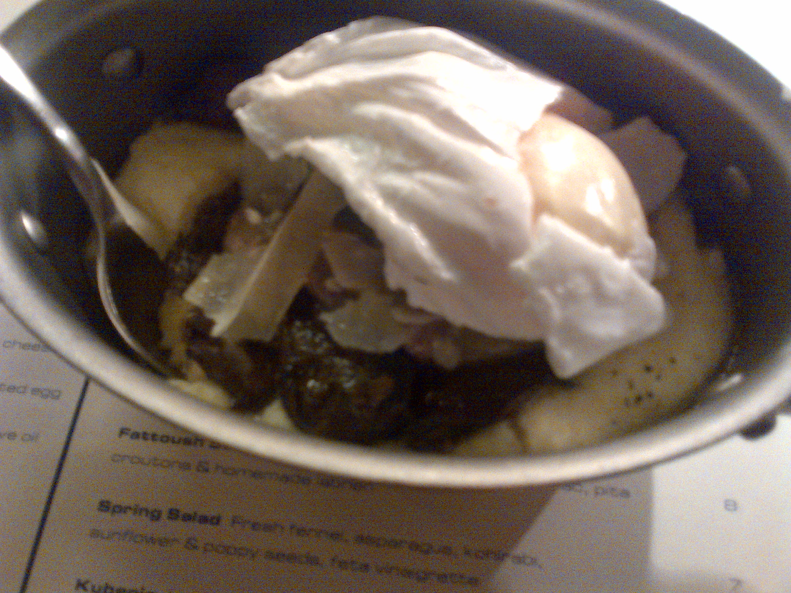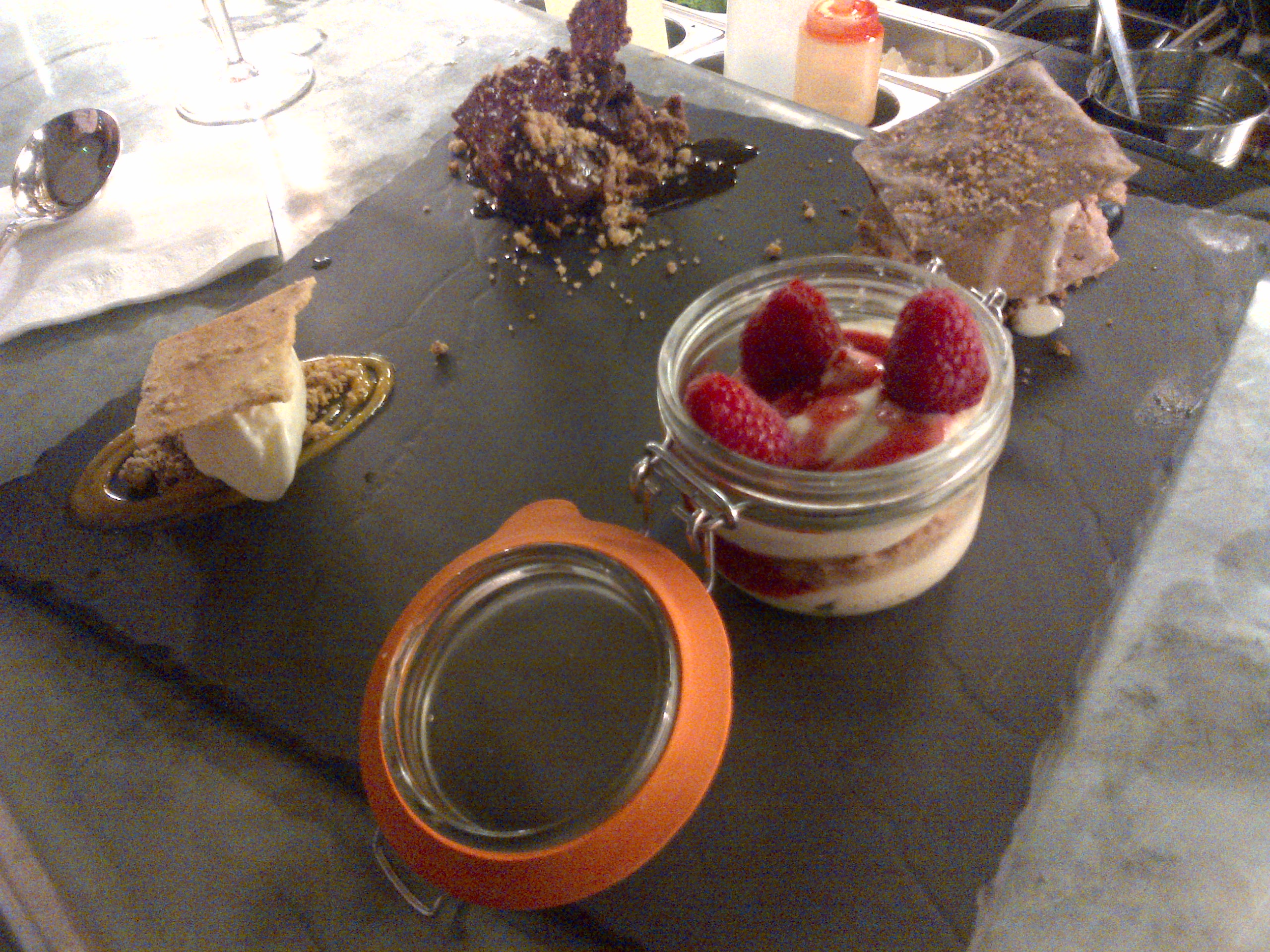 Next came “Polenta Jerusalem style” (asparagus, mushroom ragout, parmesan & truffle oil with a poached egg). This dish was perfectly sized as any more could have been slightly too rich and any less would leave the consumer wanting more. This was followed by a risotto with salmon then sea bass and mackerel with braised cauliflower.