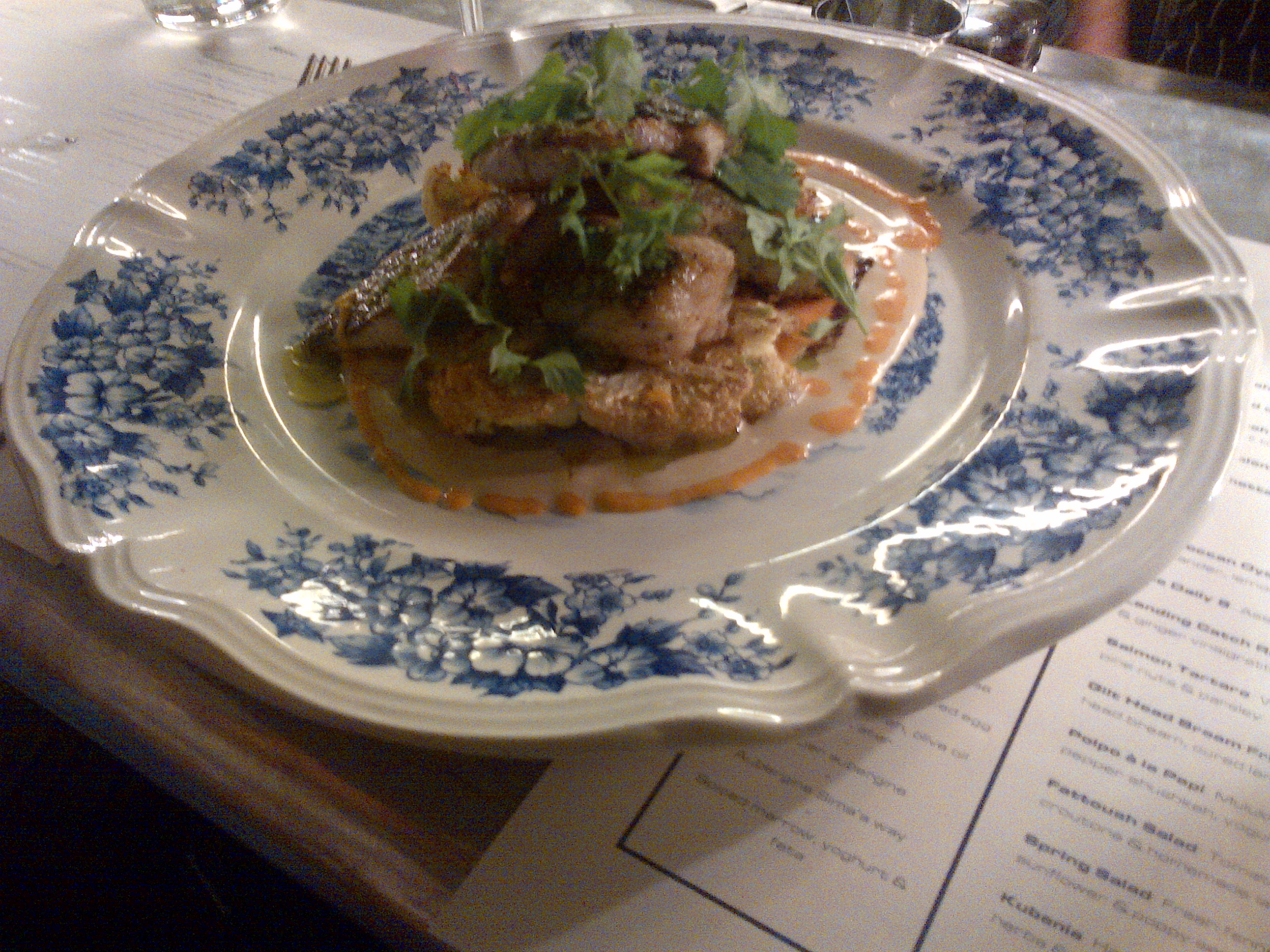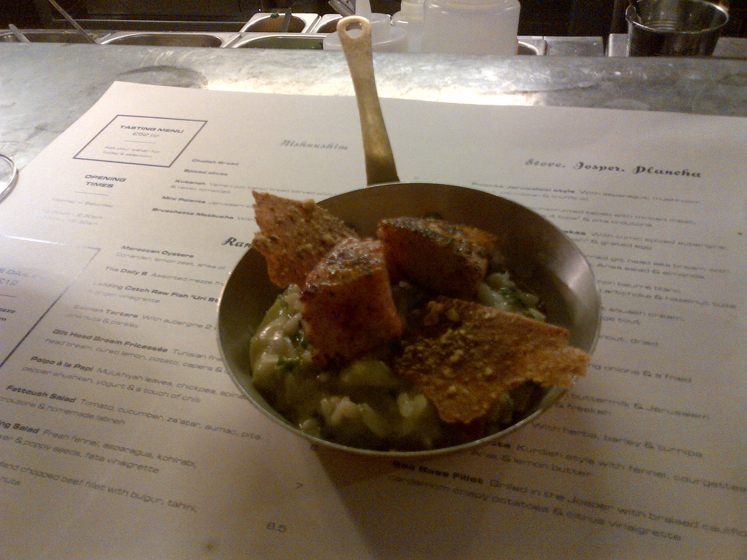 We ordered the seven course tasting menu to ensure we didn’t miss out on anything special. Each course was spectacular. Salmon carpaccio followed by “kubenia” (extremely finely hand chopped beef fillet with bulgur, tahini, herbs, pine nuts and tomato). This was really great as it was very unlike any raw beef dish I’d had before, and beautifully presented: