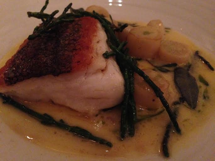 As expected the menu is designed for sharing, so after our mouthfuls we shared five dishes. First came hake with salsify, samphire, cider butter and wild fennel. This was excellent, although from a technical point of view I think more consideration could be given to how to distribute the sauce as it was one of the best bits but was somewhat abandoned in the sharing out process (in hindsight, perhaps I could have asked for a spoon…).