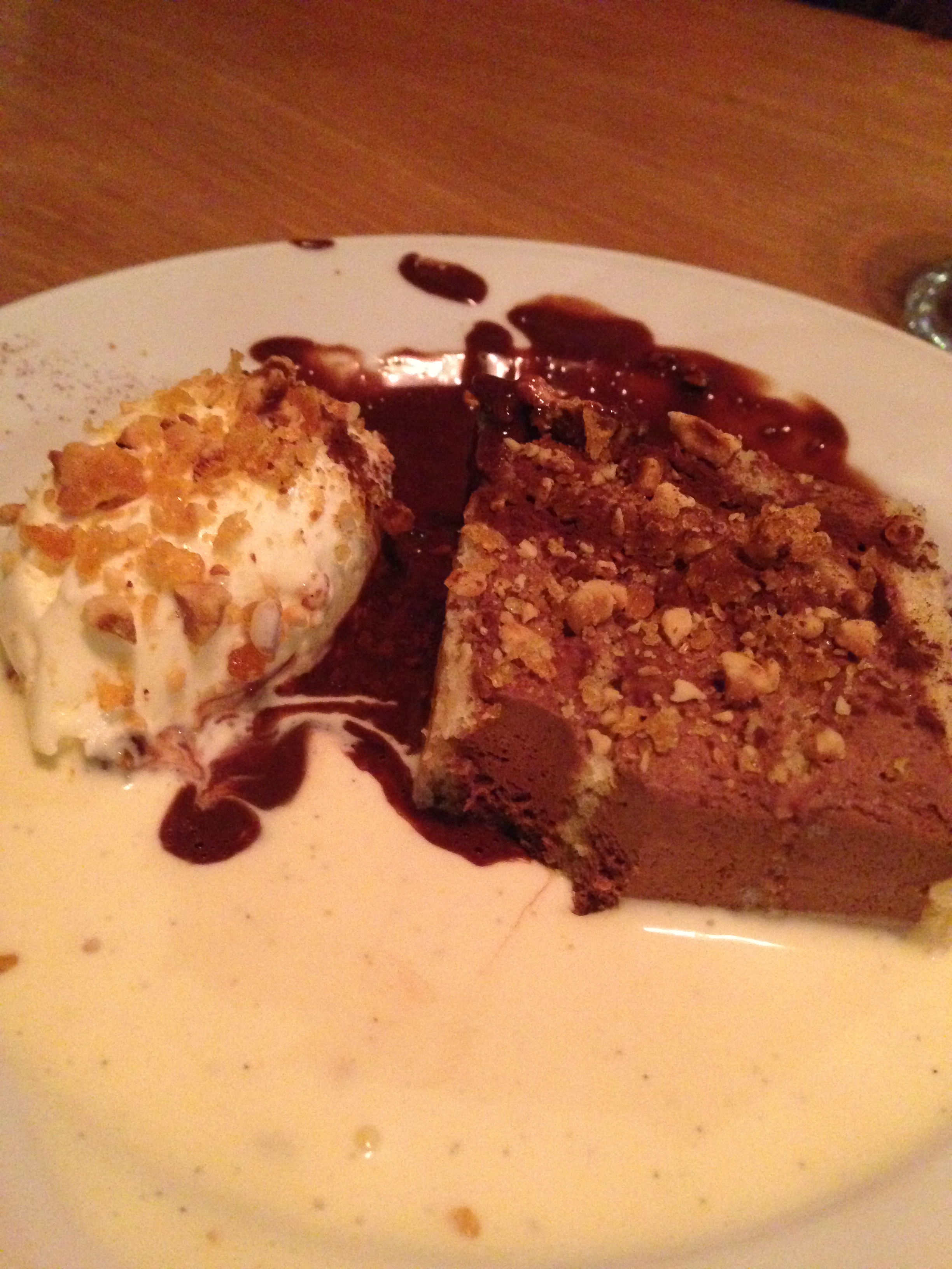 Since it was my (belated) birthday, we shared a delice joconde for dessert. This was a chocolate and praline mousse with hazelnut sponge. The mousse was so delicate, it was a dessert fit for a ballerina.